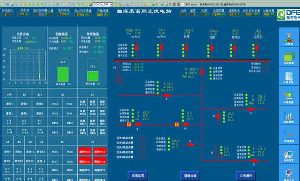只配置光伏發(fā)電和儲能系統(tǒng),不配置柴油發(fā)電設(shè)備,對光伏電站的啟停是一個很大的挑戰(zhàn);縣城的總負荷遠超預(yù)期,白天有光照但不充足時,鐵鋰儲能系統(tǒng)需要頻繁轉(zhuǎn)換充放電模式;為解決這些難點,配置微網(wǎng)能源管理系統(tǒng)進行控制和調(diào)節(jié)。