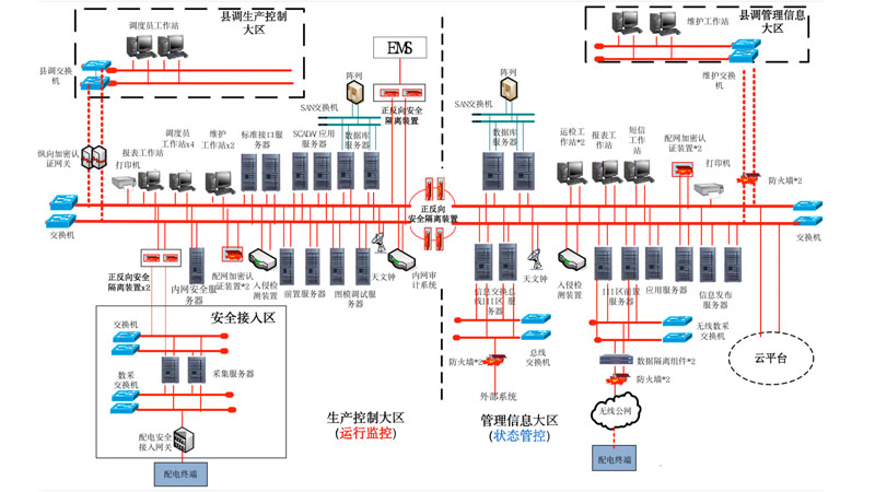 新一代配電自動化系統(tǒng)主站以大運行與大檢修為應(yīng)用主體,遵循國網(wǎng)最新的配電主站系統(tǒng)架構(gòu)規(guī)范,按照“地縣一體化”部署,依據(jù)分區(qū)采集的原則,強化邊界防護,安全接入光纖/無線、專網(wǎng)/公網(wǎng)等通訊方式的三遙終端、二遙終端及故障定位裝置,具備橫跨生產(chǎn)控制大區(qū)與管理信息大區(qū)一體化支撐能力,構(gòu)建基于配電網(wǎng)分析模型中心和運行數(shù)據(jù)中心的新一代配電網(wǎng)調(diào)度支撐平臺,為運行控制與運維管理提供一體化的應(yīng)用,滿足配電網(wǎng)的運行監(jiān)控與運行狀態(tài)管控需求。 系統(tǒng)全面遵循IEC61968/61970標(biāo)準(zhǔn)設(shè)計,通過信息交互總線,實現(xiàn)與EMS、PMS2.0等多系統(tǒng)的數(shù)據(jù)共享,具備對外交互圖模數(shù)據(jù)、實時數(shù)據(jù)和歷史數(shù)據(jù)的功能,支撐各層級數(shù)據(jù)縱、橫向貫通以及分層應(yīng)用,形成配電網(wǎng)運行監(jiān)控與調(diào)度作業(yè)的全過程閉環(huán)管理,支撐著配電網(wǎng)調(diào)控運行、生產(chǎn)運維管理、狀態(tài)檢修、缺陷及隱患分析等精益化管理,并為配電網(wǎng)規(guī)劃建設(shè)提供數(shù)據(jù)支持。